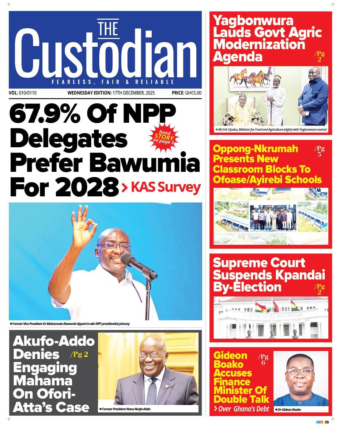 Newspaper Frontpages – Wednesday, 17th December, 2025