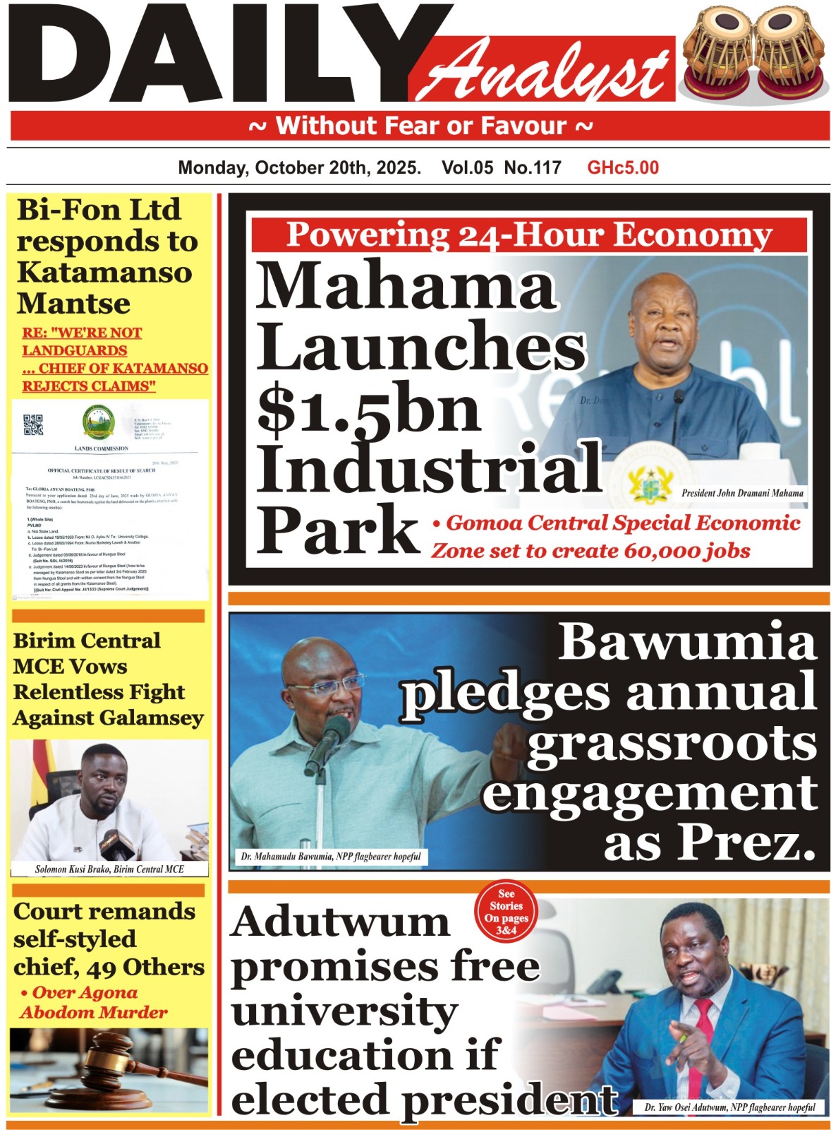 Newspaper Frontpages – Monday, 20th October, 2025