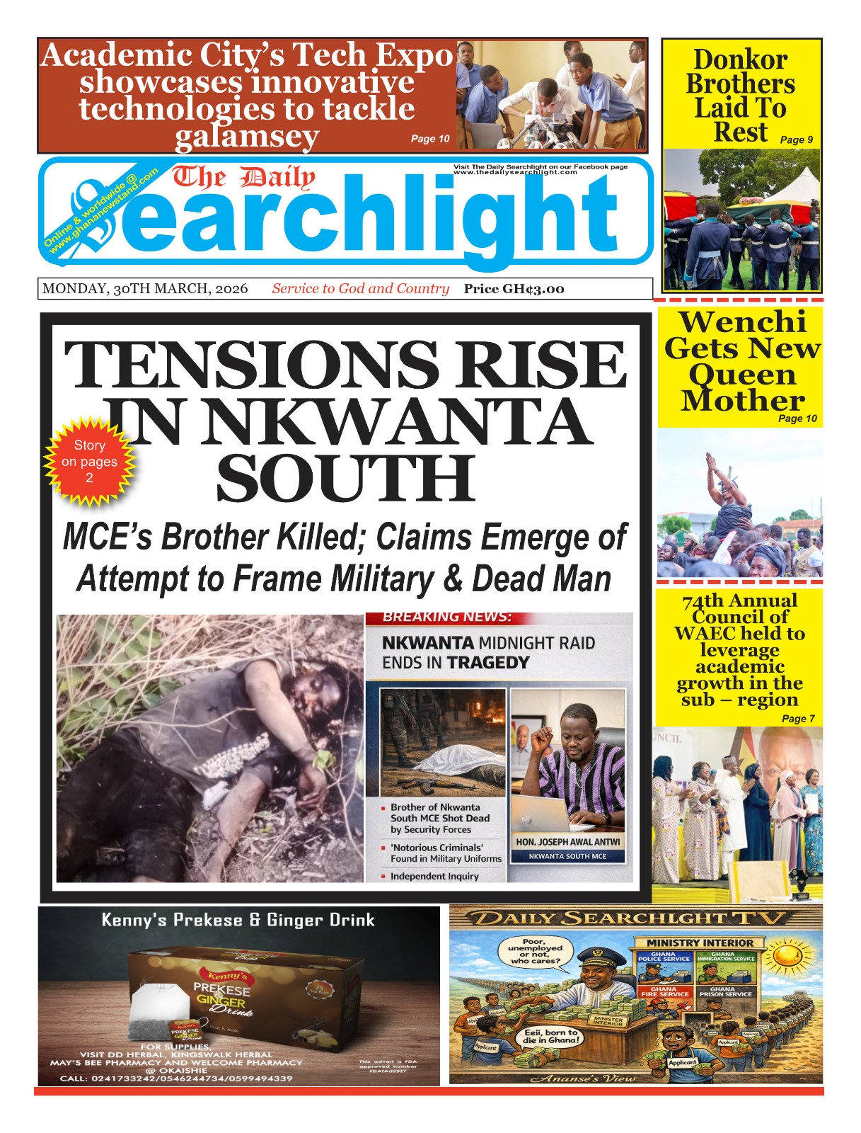 Newspaper Frontpages – Monday, 30th March, 2026