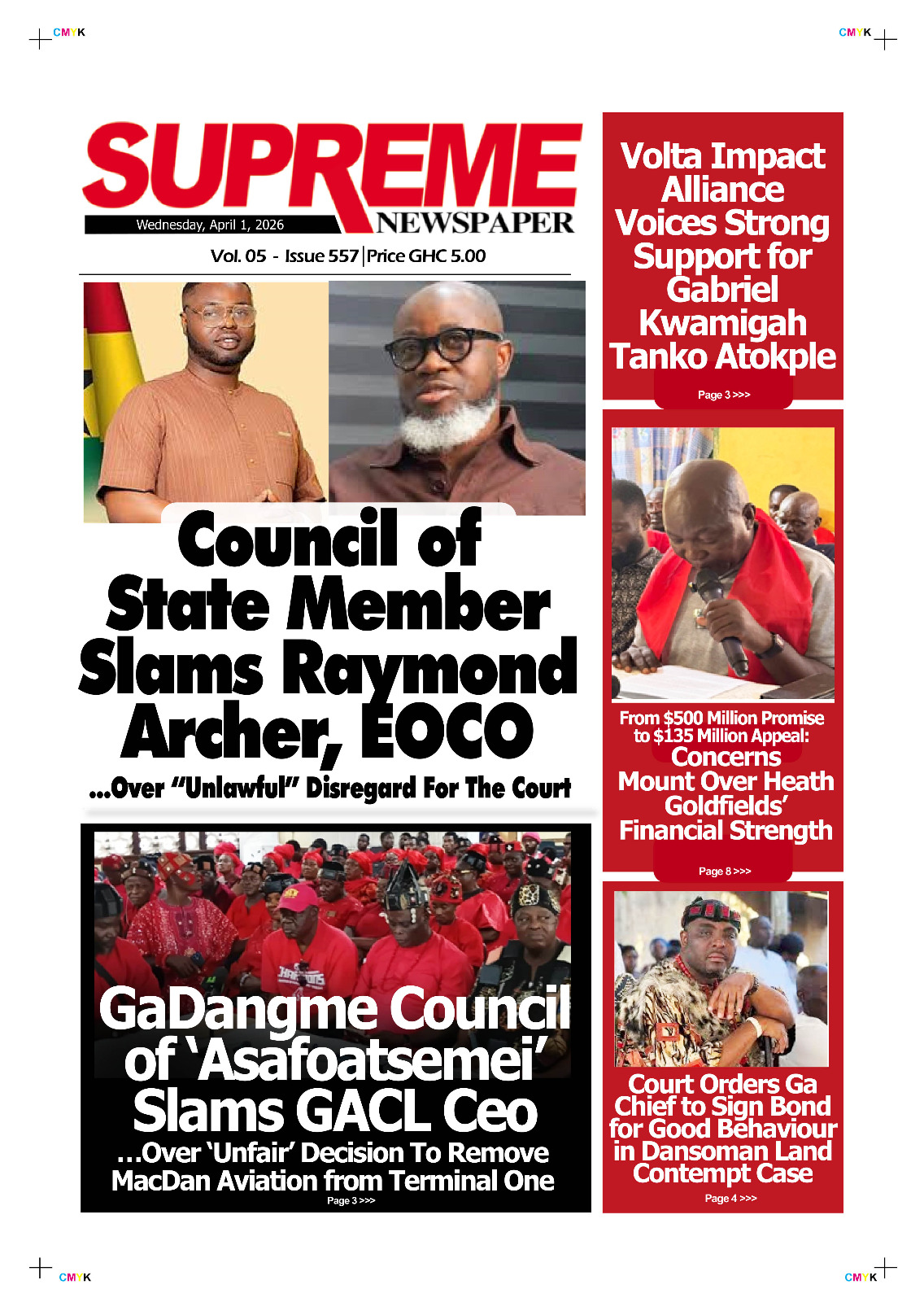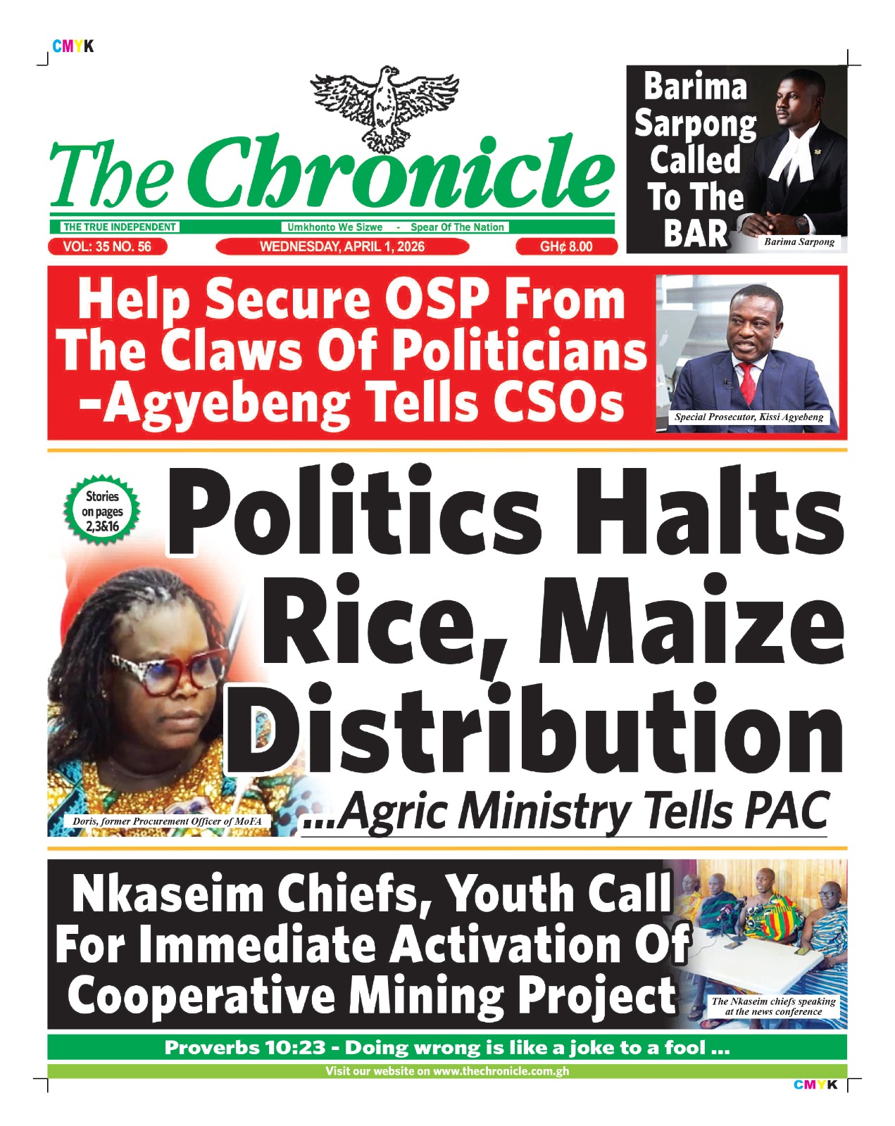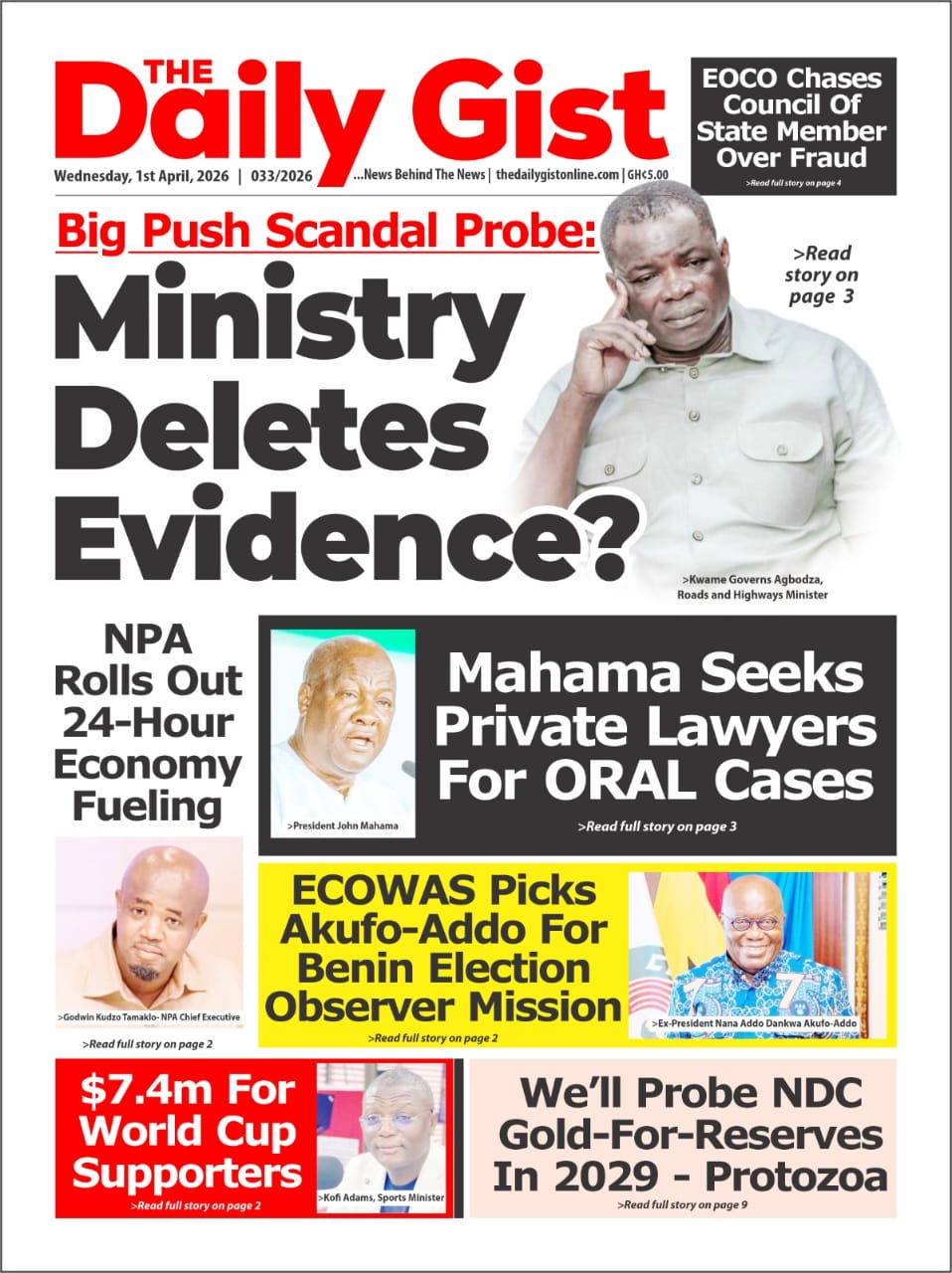 Newspaper Frontpages – Wednesday, 1st April, 2026